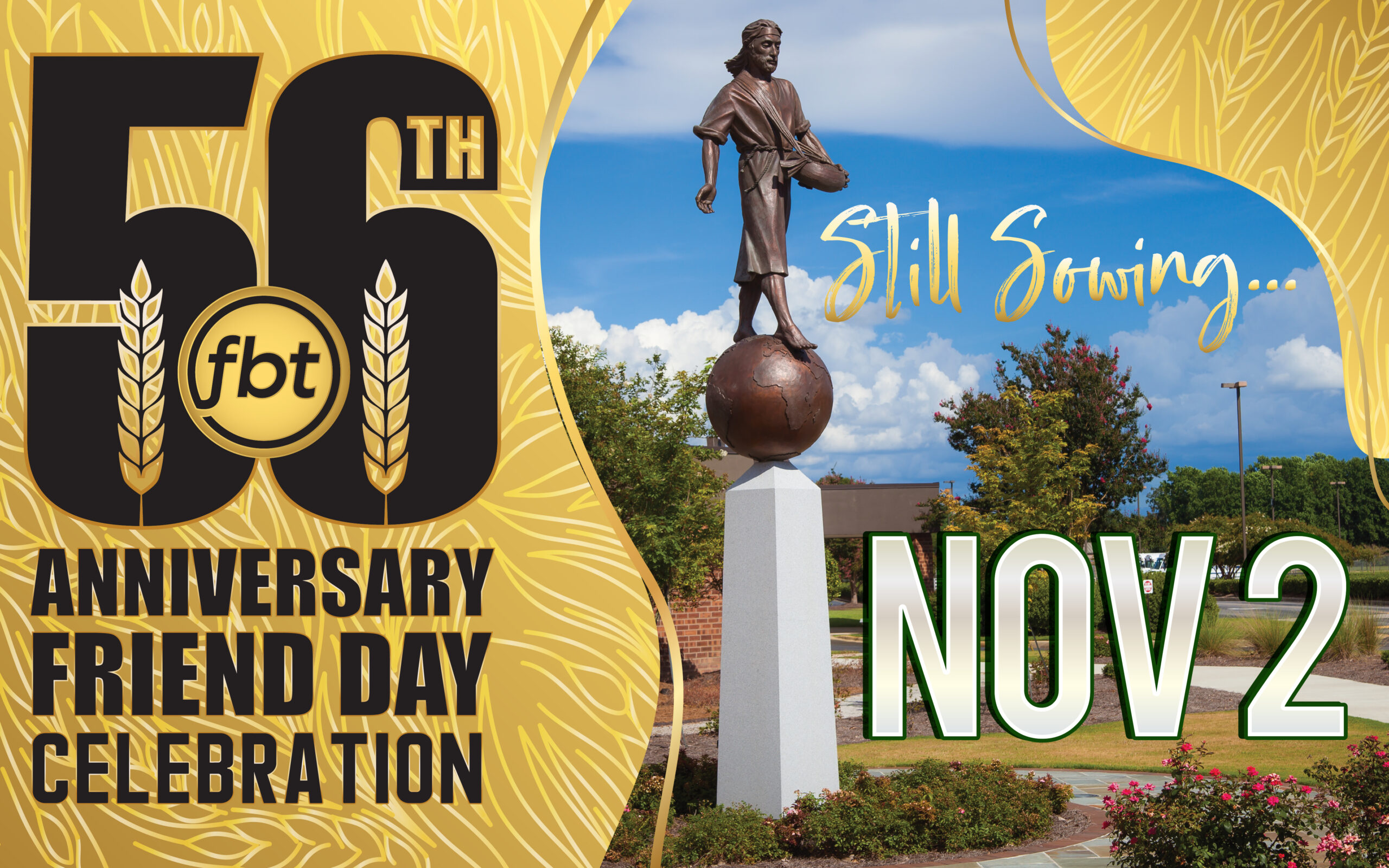FBT’s Anniversary is always a day we want to open our doors to an abundance of friends! This year, for our 56th Anniversary on November 2nd, we’ve got extra celebratory events going on! Check out the schedule below, and invite someone to join you this year for Friend Day at FBT!