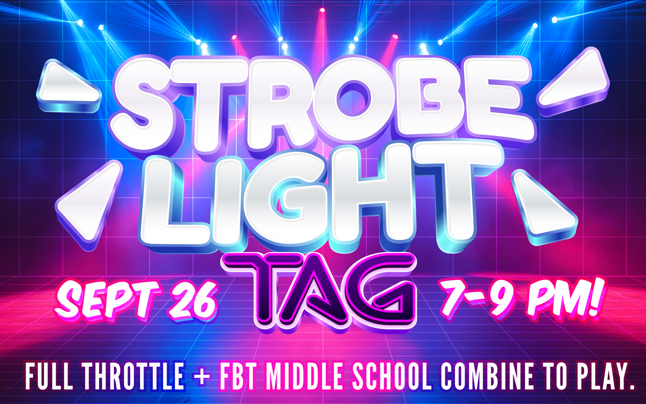 Our Teen RU Ministry (Full Throttle) and the FBT Youth Middle School Department are joining up for a night of Strobe Light Tag!